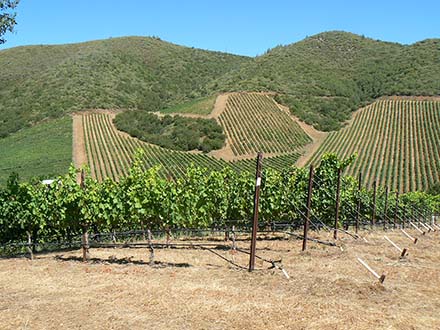 The 60-acre Dragone Ranch, perhaps the county's most topographically dramatic vineyard, is planted to 16 different varieties, and ranges in elevation from about 1,600 to 2,000 feet with hillside slopes of 20% and more. Dragone was originally planted in 2000 by former vineyard and winery owner Barden Stevenot, with consultation from Collum. Stevenot Winery was the first major post-Prohibition winery in the county when it was started in the 1970s.