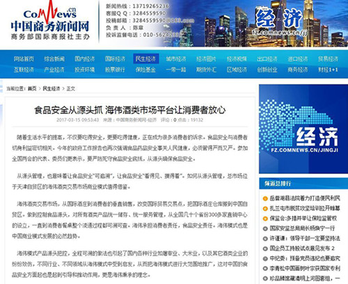 Haiwei Liquor Trading Market Platform Can Reassure Domestic Consumers by Securing the Safety of Foods & Liquors from the Source
