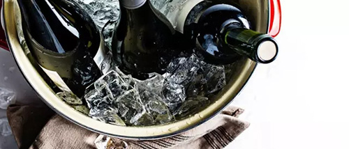 需要注意的是,许多人认为只要将葡萄酒放入冰块之中就可以降温,实际上这样冰镇的效果非常的差。在装满冰块的冰桶里倒入半桶水,可以加大葡萄酒酒瓶与冰水之间的接触面积,冰水在融化的过程中会将葡萄酒内的热量快速吸去从而达到制冷的效果。假如只有冰块和酒瓶,由于两者自己的接触面积太小,两者之间充满了空气,这样冰镇效果几乎等于零。